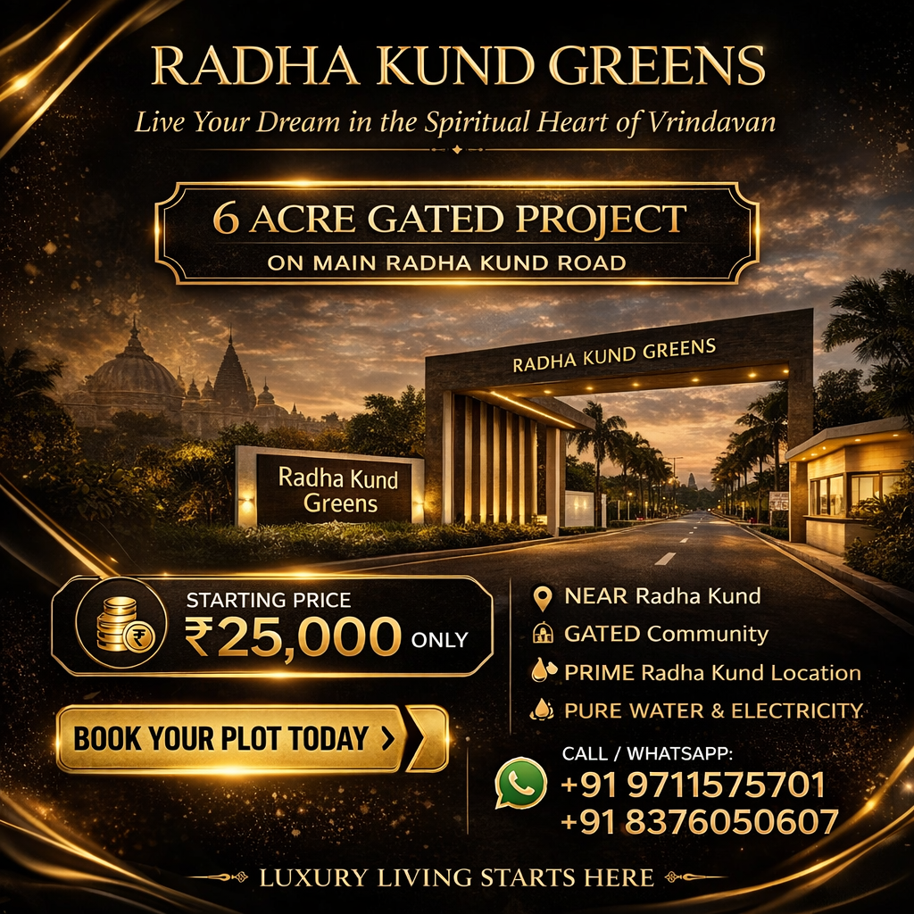 Vrindavan is rapidly emerging as a prime destination for real estate investment, offering a perfect blend of spiritual significance and modern development. With growing infrastructure, increasing demand for residential plots, and excellent connectivity, it provides investors with strong appreciation potential and a peaceful lifestyle. Investing here is not just about property—it’s about securing a valuable asset in a high-growth location.”