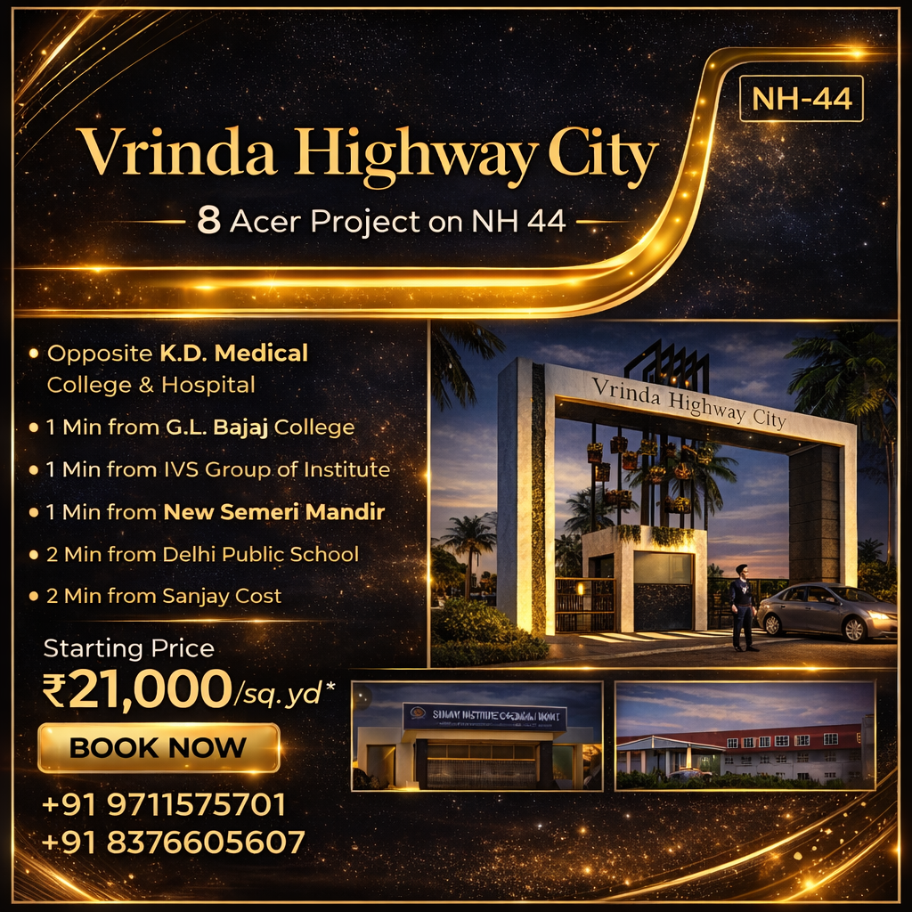 Located on the prestigious National Highway-44 Road, Vrinda Highway City by Brajbhoomi Realty, it offers a perfect blend of luxury, convenience, and tranquility.